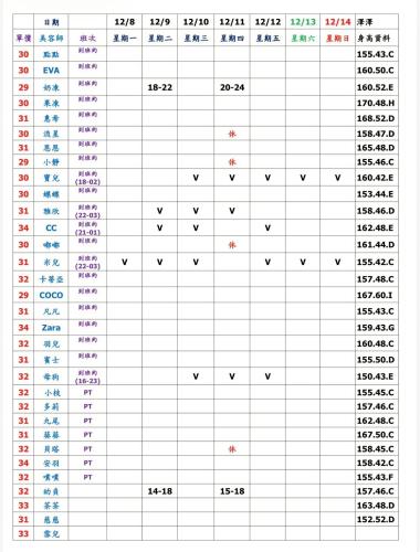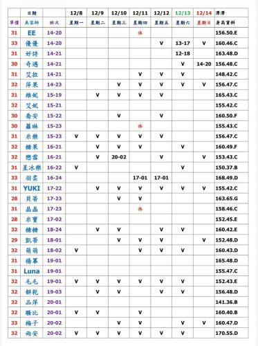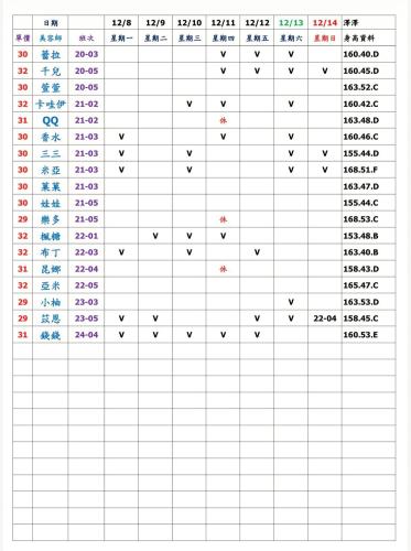 - 有打V為報班、時段代表當日的上班時段(不一定有空班)