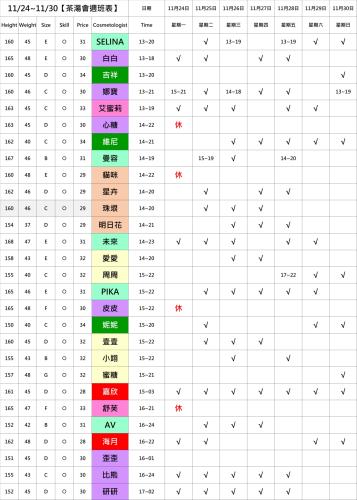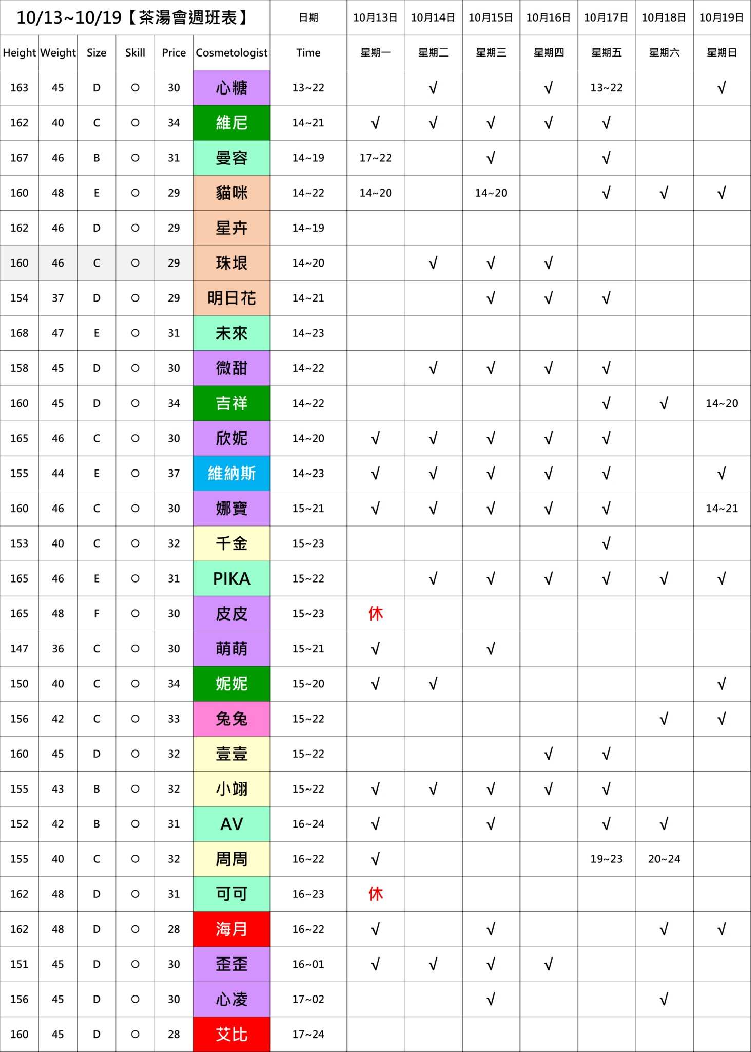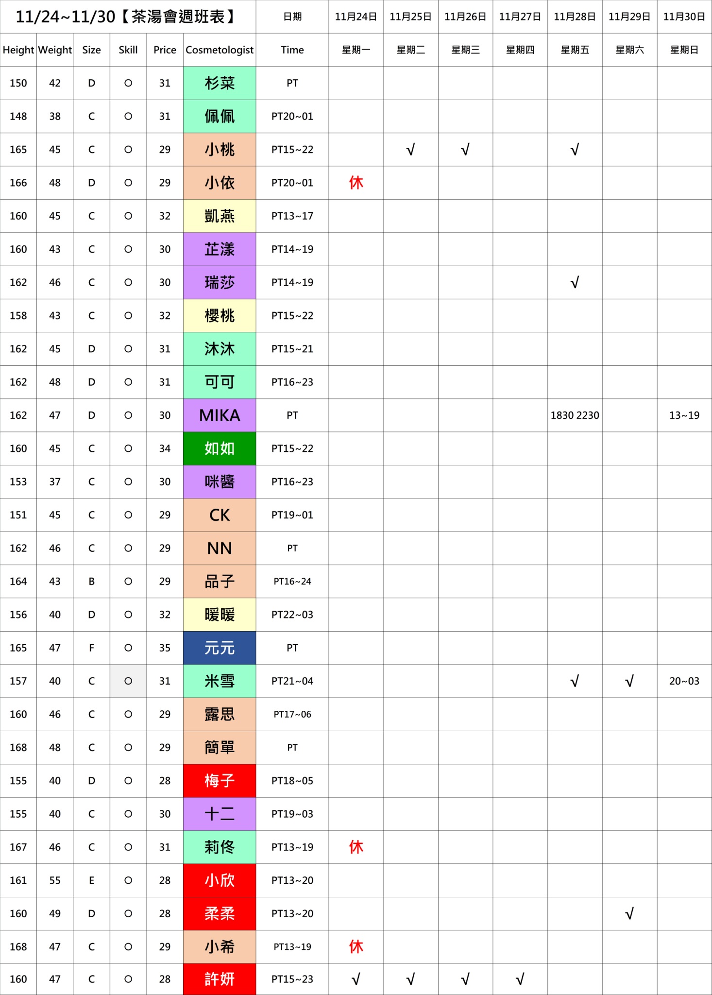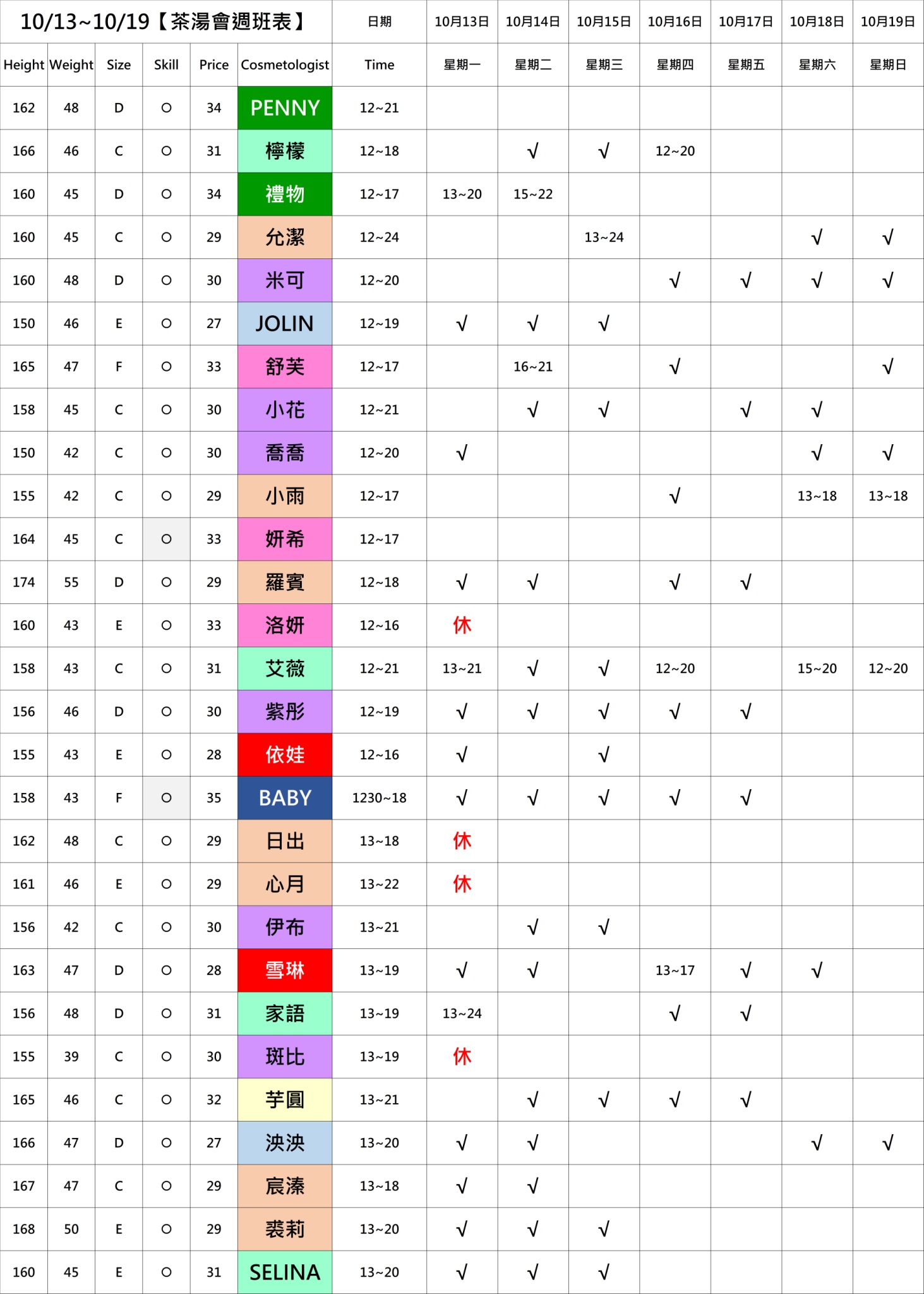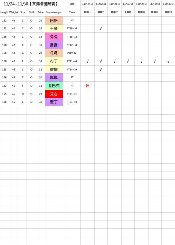 - Time:打勾為報班、時段代表當日的上班時段(不一定在)