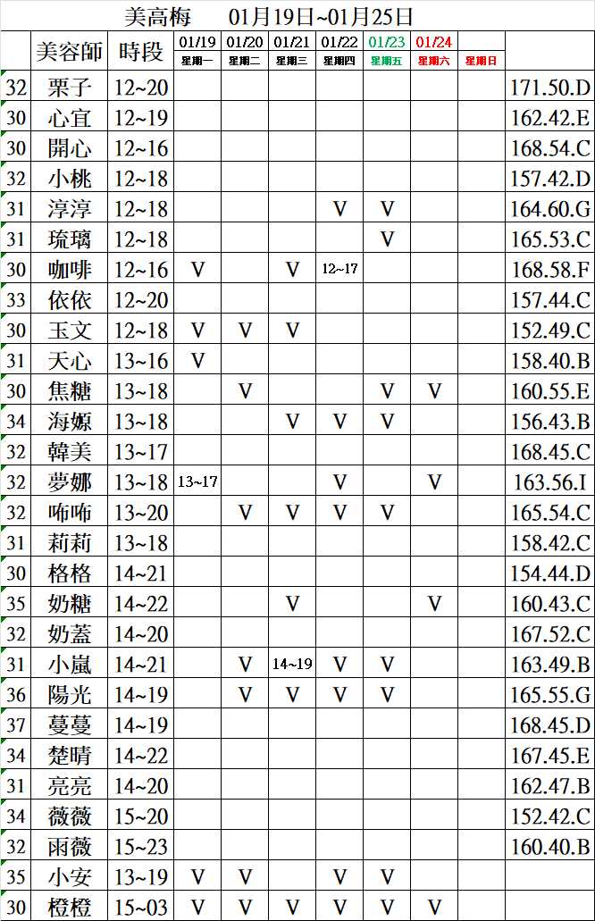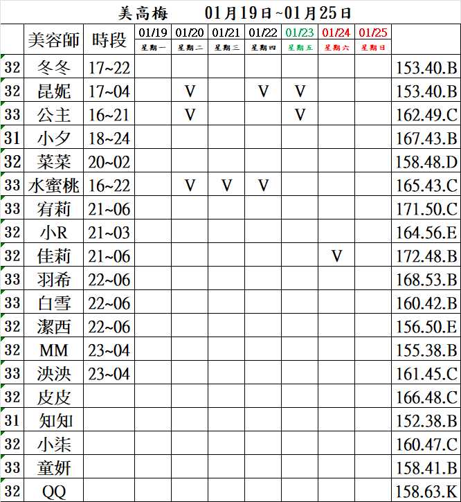 - 有打 V 即為報班、時段表示當日的報班時段(不一定有空班)