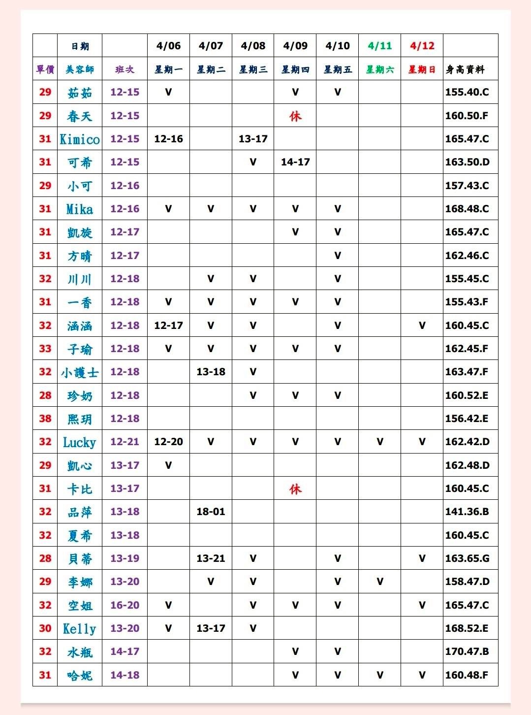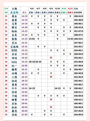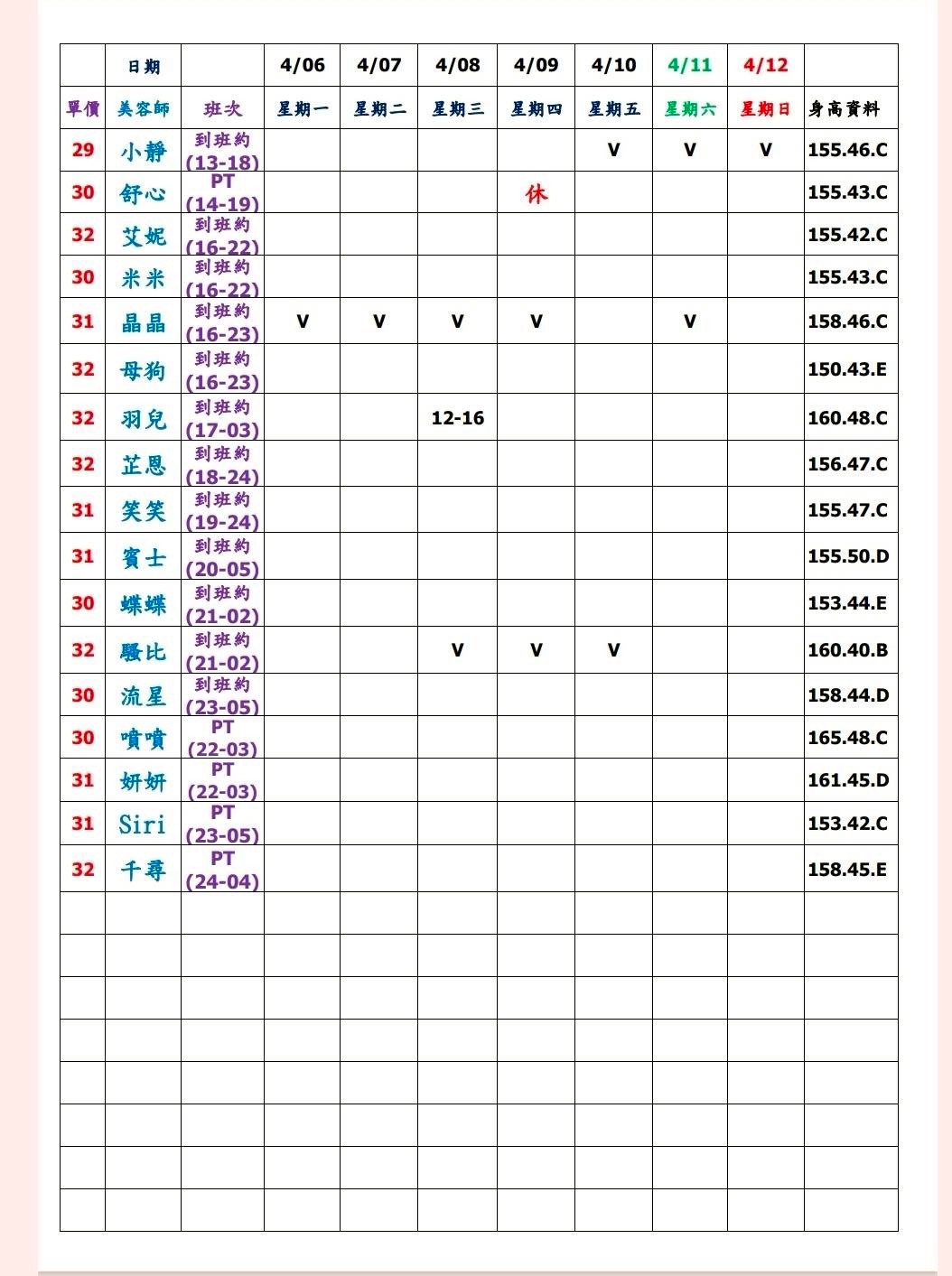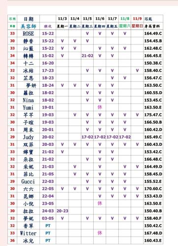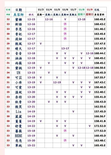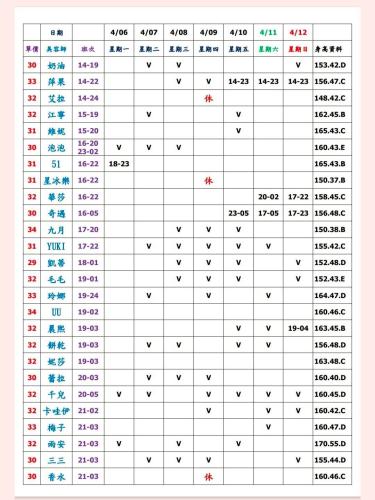 - 有打勾為報班、時段代表當日的上班時段(不一定有空班)