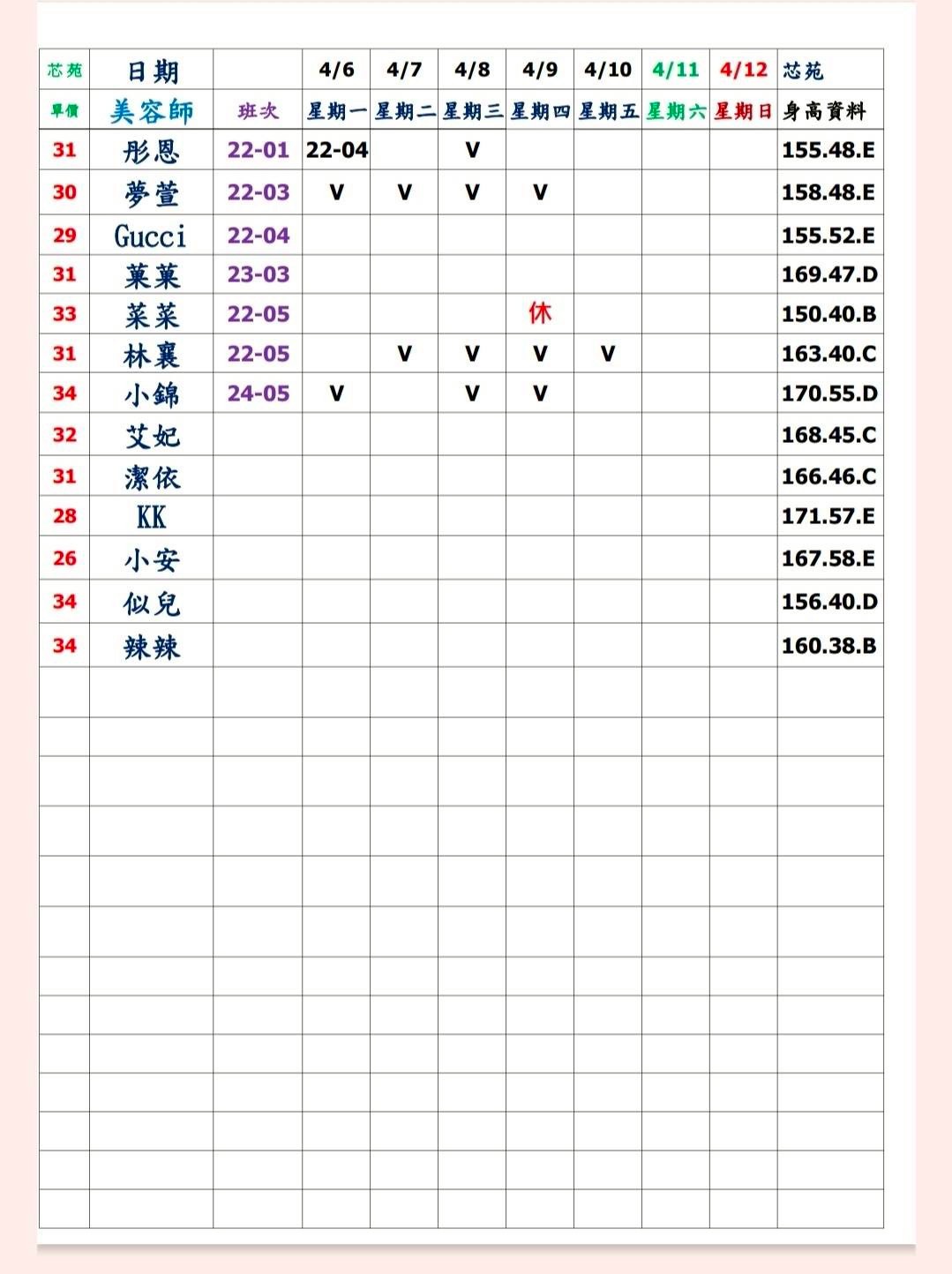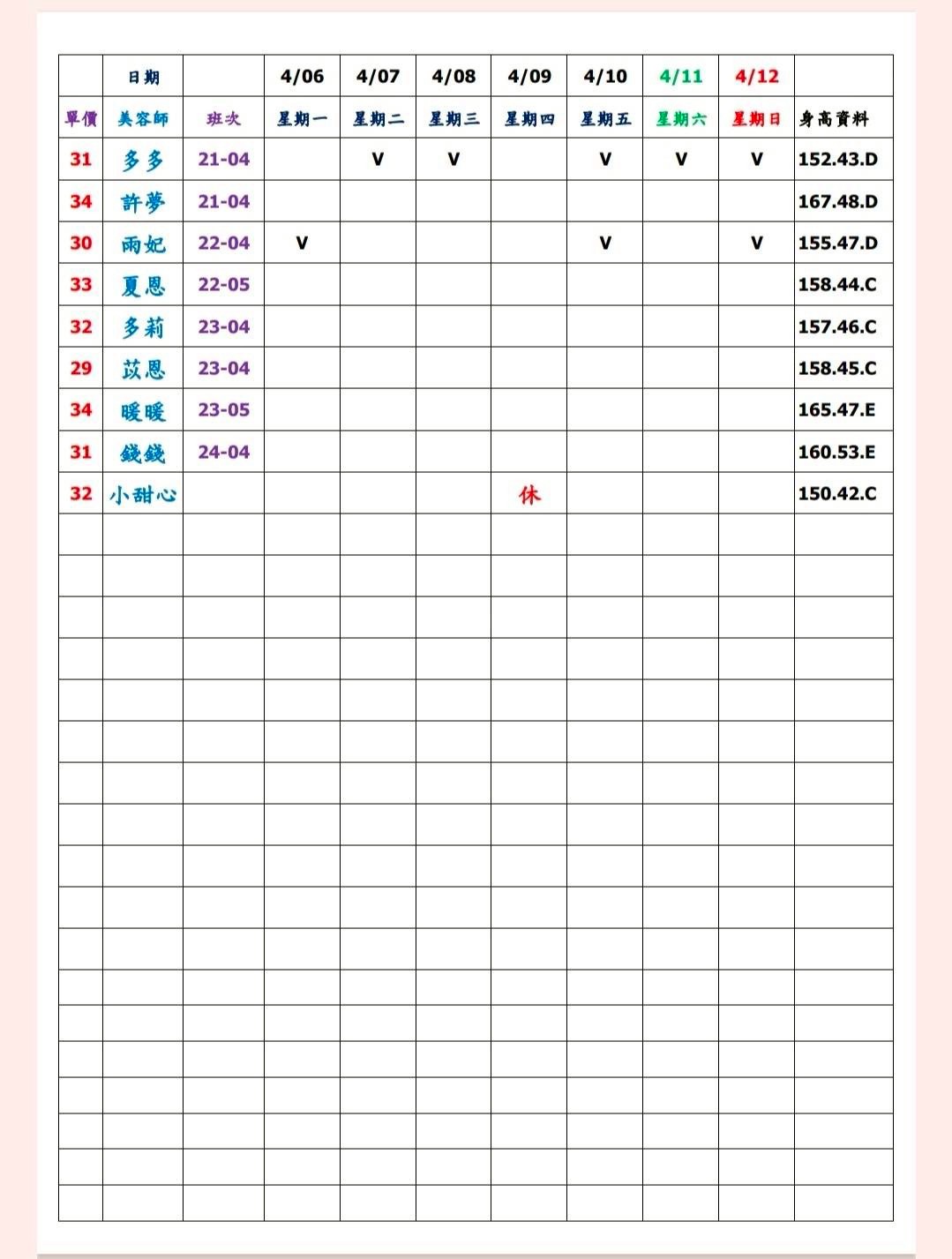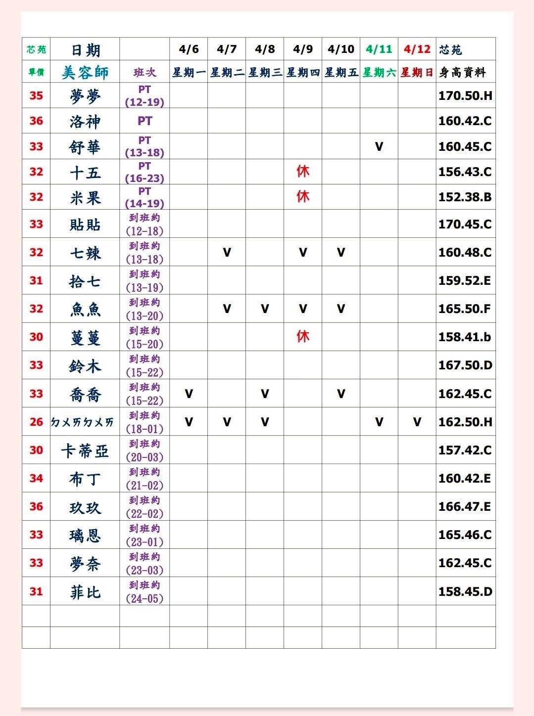- 有打勾為報班、時段代表當日的上班時段(不一定有空班)