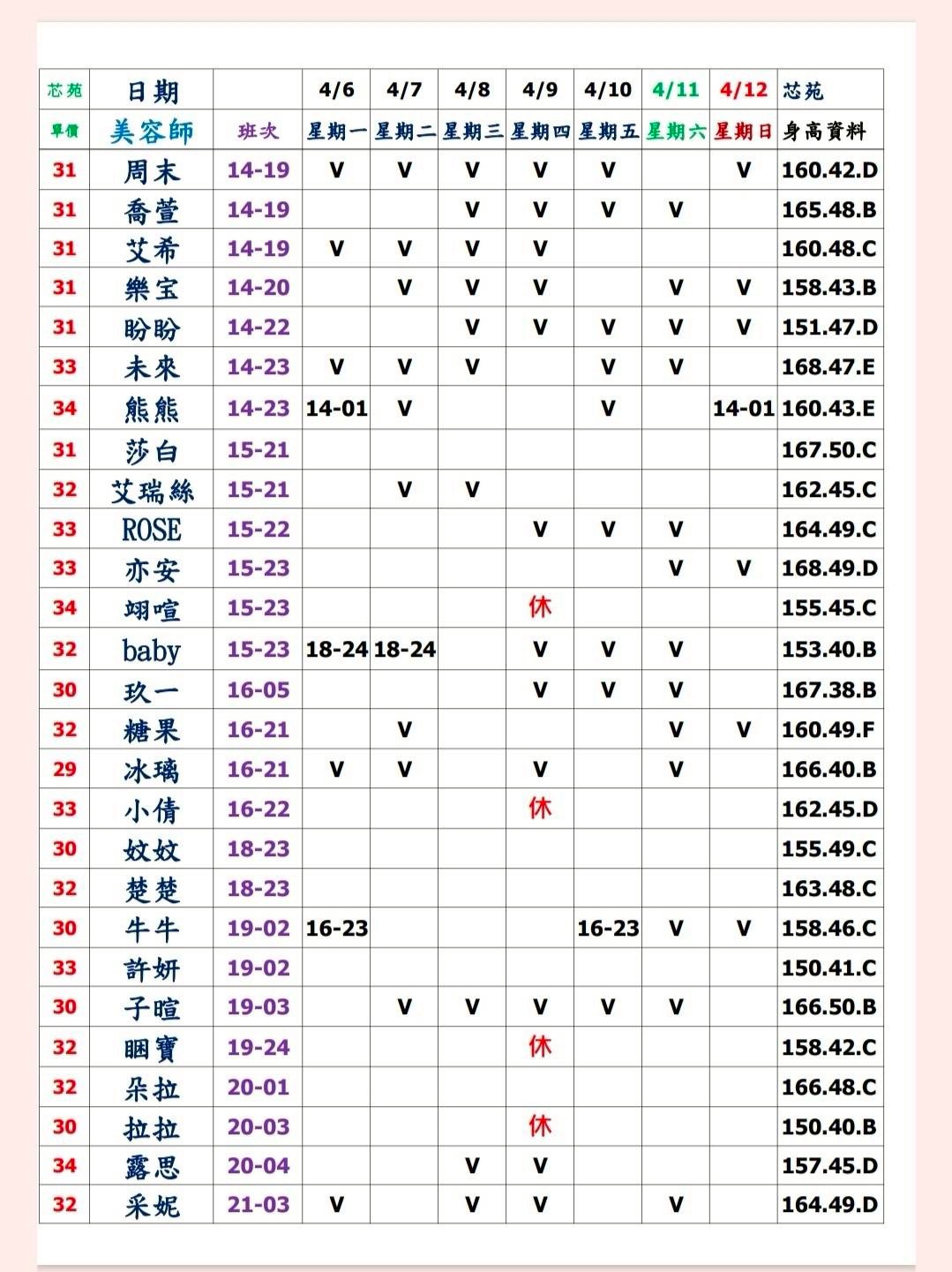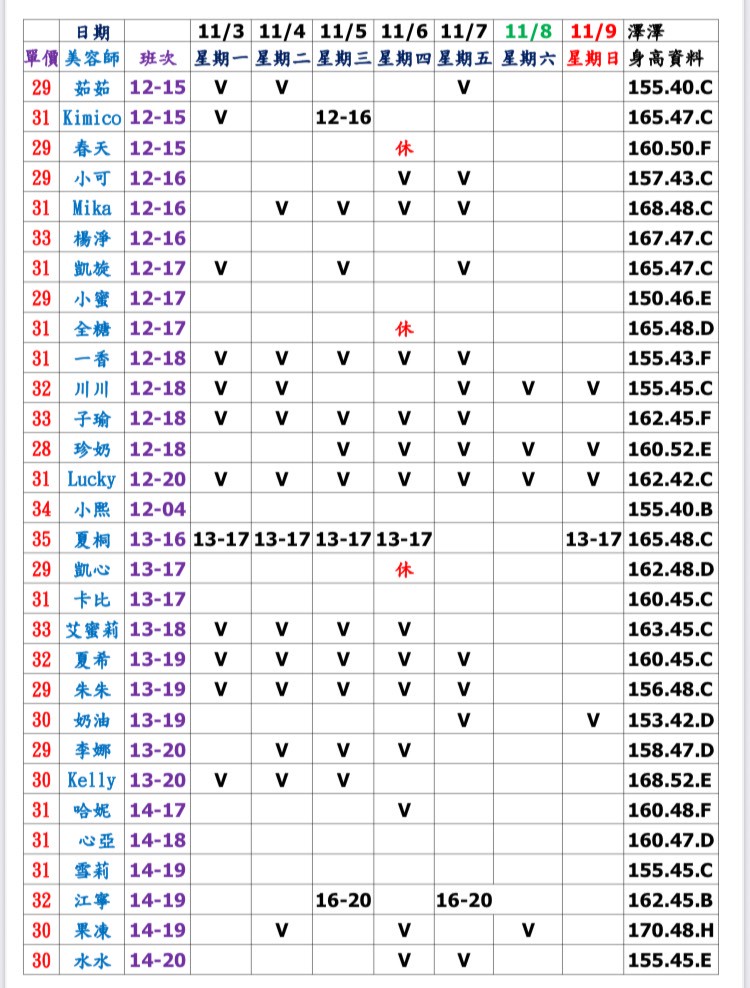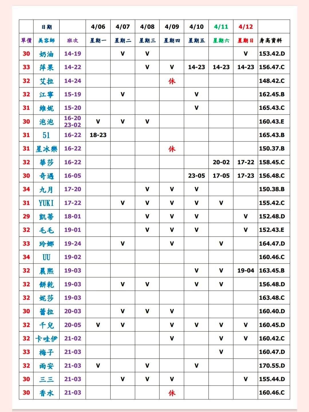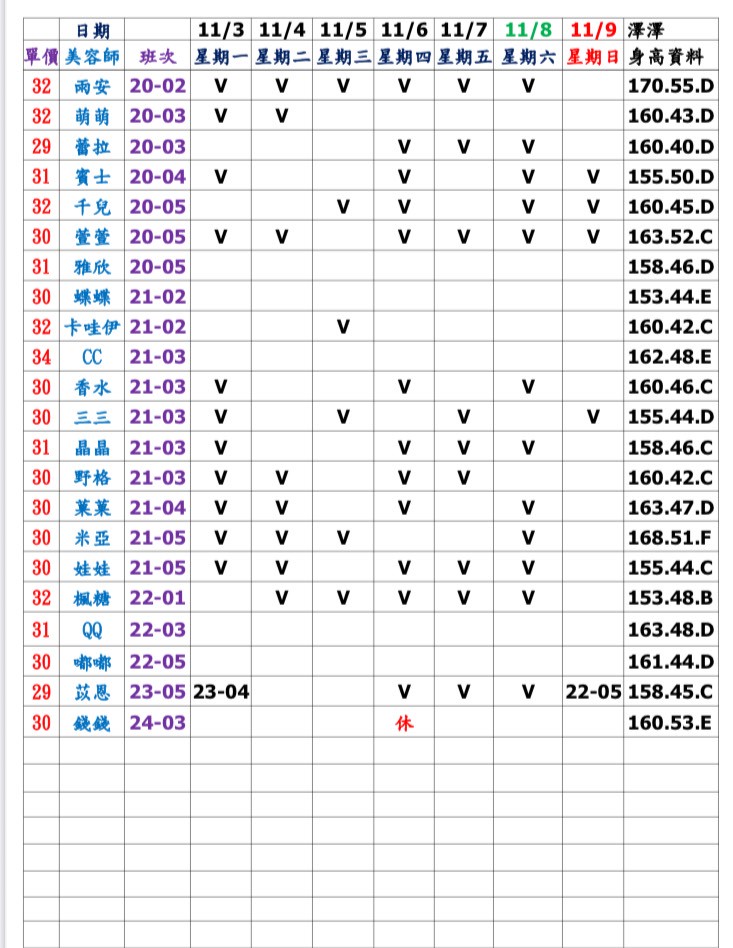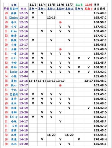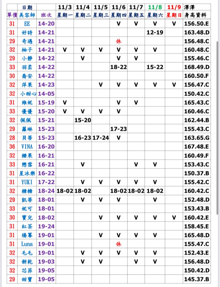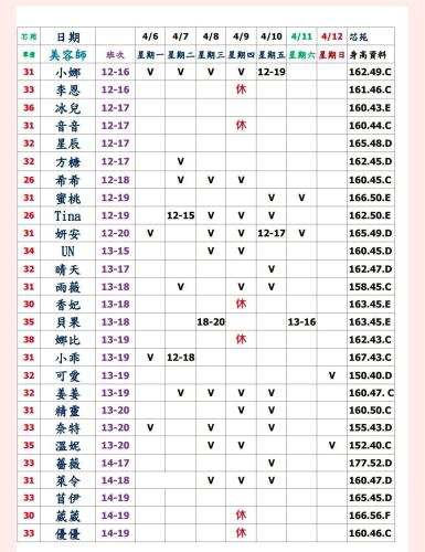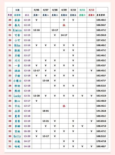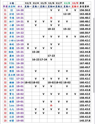 - 有打V為報班、時段代表當日的上班時段(不一定有空班)