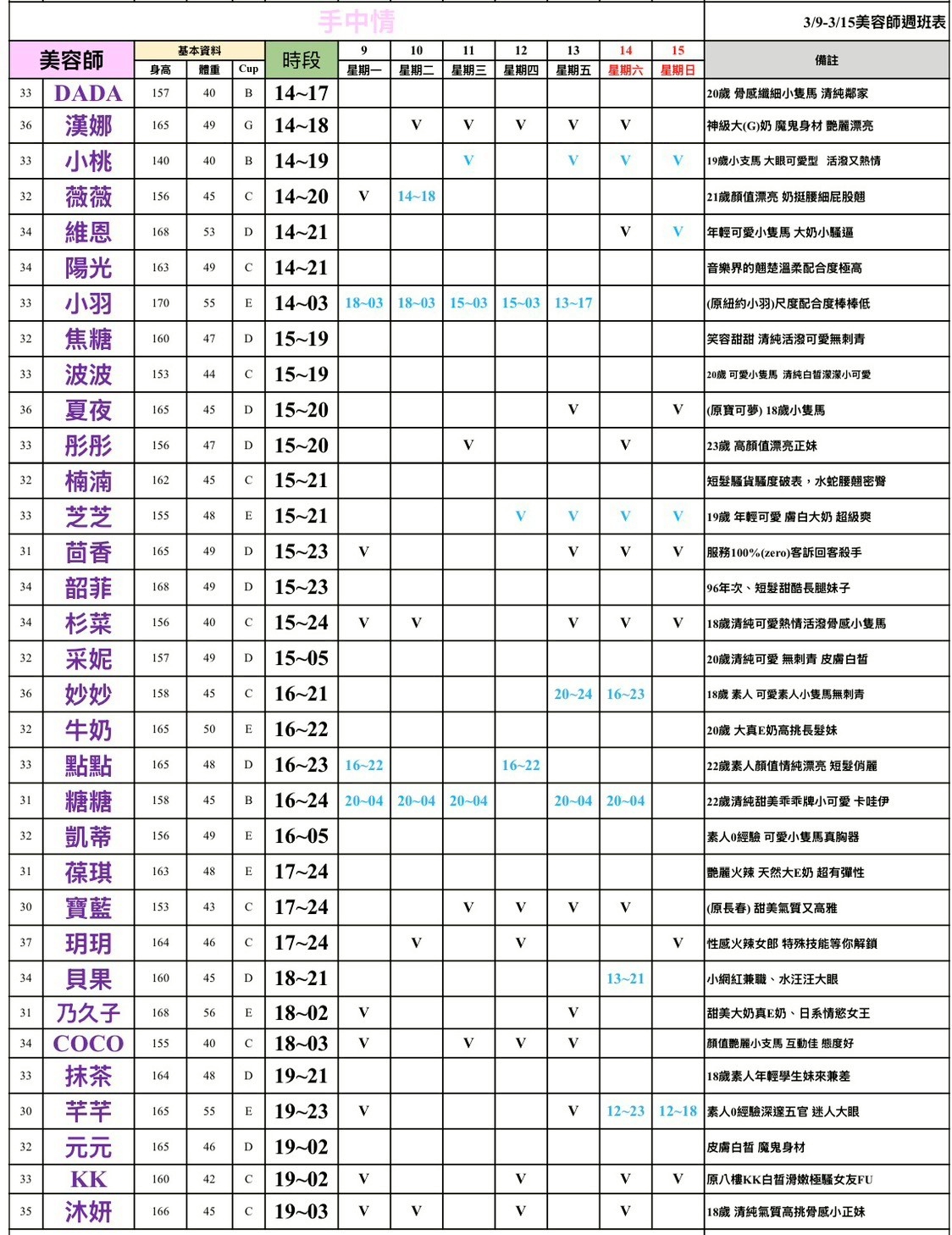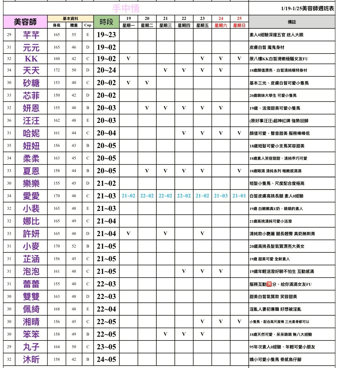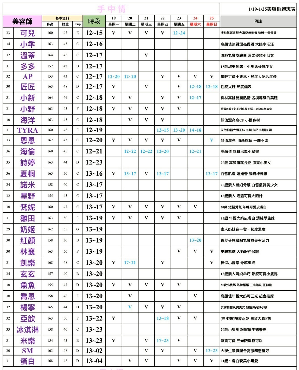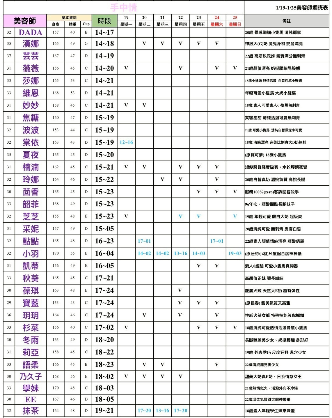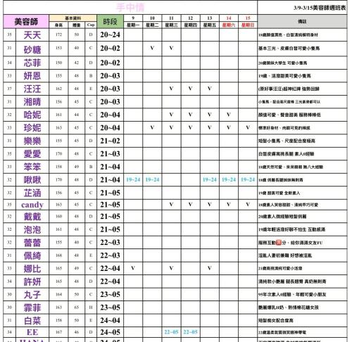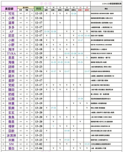 - 有打 V 為報班、時段代表當日的上班時段(不一定有空班)
